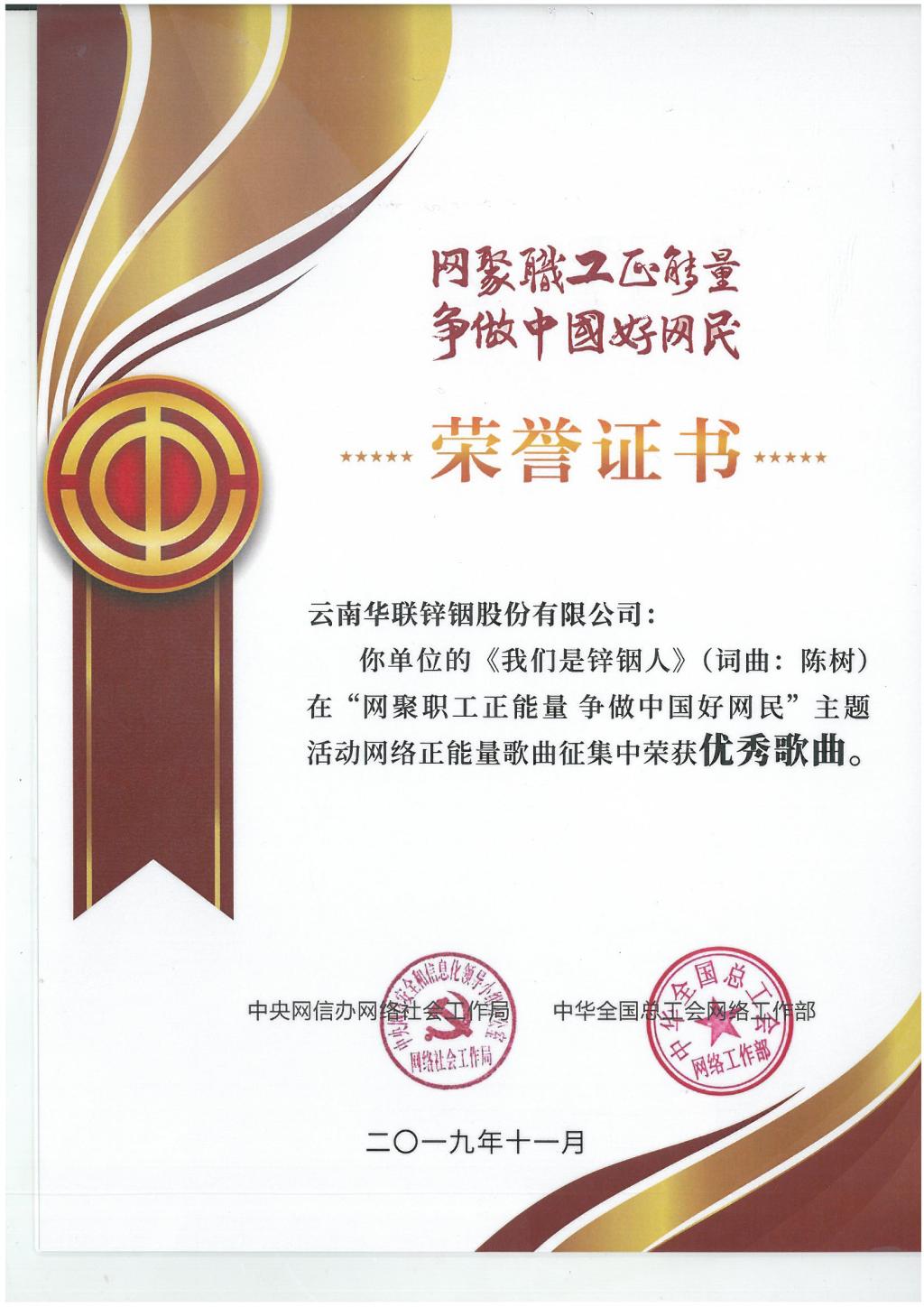 近期,华联锌铟公司形象歌曲—《我们是锌铟人》MV在全国“网聚职工正能量 争做中国好网民”主题活动网络正能量歌曲征集中荣获优秀歌曲。