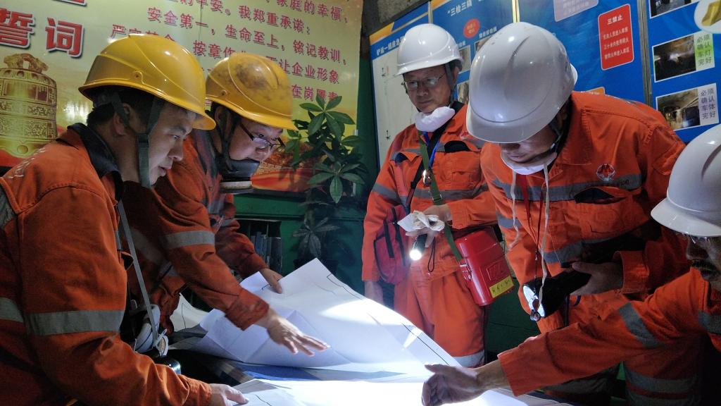 高峰山南盘区1668分段采场迎头,研究组一行相关地质资料图纸,对整个高峰山南盘区矿群地质构造、矿体赋存情况进行深入分析,对层间氧化矿成矿分析、花岗岩岩体含矿性研究,并对老厂分公司地质找矿工作及矿石研究工作提出了指导意见。