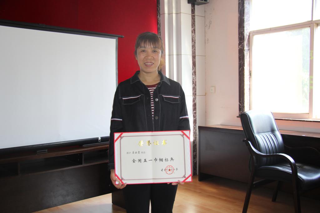 如今,苏云霞同志获得了中华全国总工会授予“全国五一巾帼标兵”称号,更是激励了广大女职工立足本职、爱岗敬业、追求卓越、争创一流,用生命奏响“中国梦劳动美”的动人乐章。