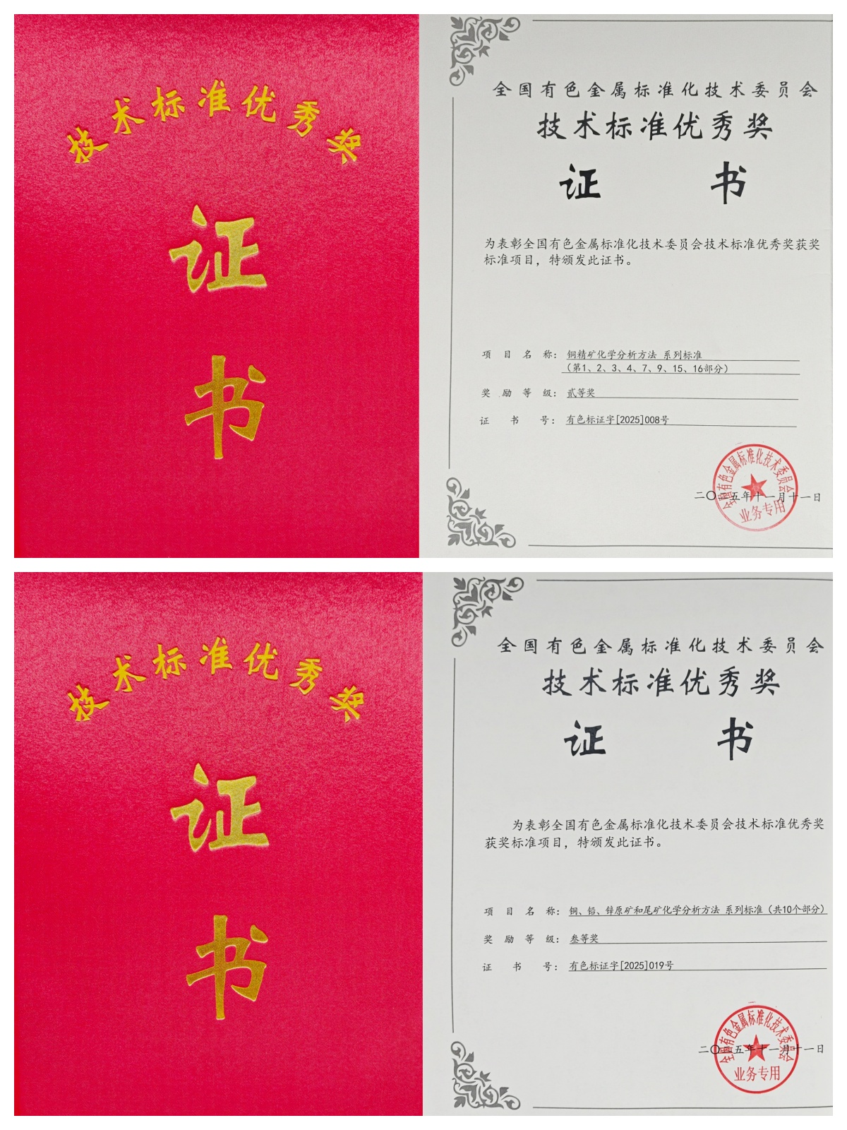 近日,全国有色金属标准化技术委员会2025年度“标委会技术标准优秀奖”评选结果公布,锡业股份所属华联锌铟公司、文山锌铟冶炼公司参与制定的国家标准《铜精矿化学分析方法》(共8部分)获二等奖;华联锌铟公司《铜、铅、锌原矿和尾矿化学分析方法》系列标准(共10部分)获三等奖。