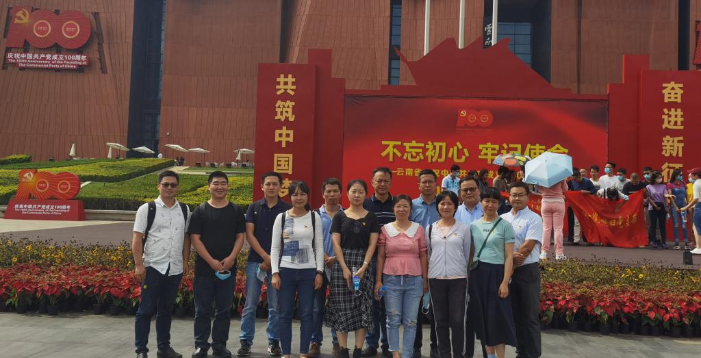 集中学习后,大家前往云南省博物馆参观“不忘初心、牢记使命”——云南省庆祝中国共产党成立100周年成就展,通过图片、文字、实物场景和3D裸眼全息等数字技术表现形式,领略在党的领导下云南百年来各个历史阶段的重大事件、重要成就,以及党带领云南各族人民谱写团结奋斗、繁荣发展的壮丽篇章。