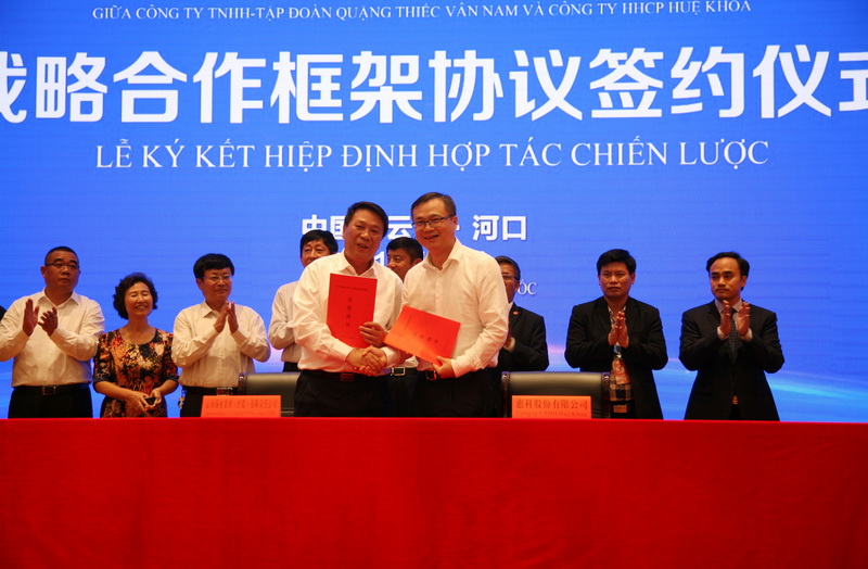 12月4日,以“亲诚惠容·合作发展”为主题的2018年第十八届中越(河口)边境经济贸易交易会(以下简称“边交会”)在河口开幕。控股公司应邀参加,并与惠科股份有限公司达成战略合作。控股公司党委书记、董事长张涛,党委常委、副总经理程睿涵,党委常委、工会主席、锡业股份董事长汤发,副总经理宋兴诚等领导出席相关活动。